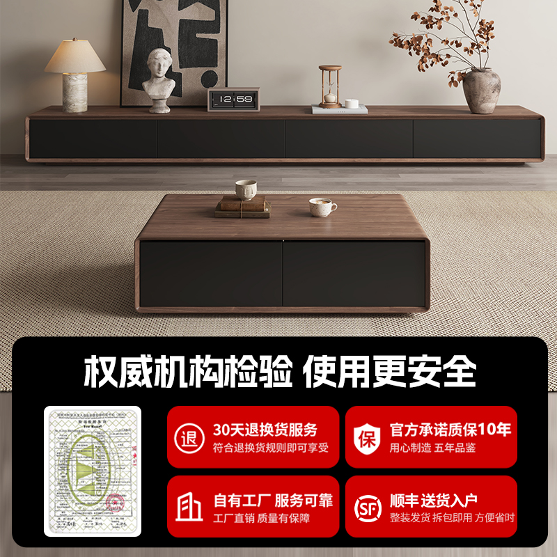 岩板电视柜茶几组合客厅家用2025新款 极简小户型实木落地电视机柜