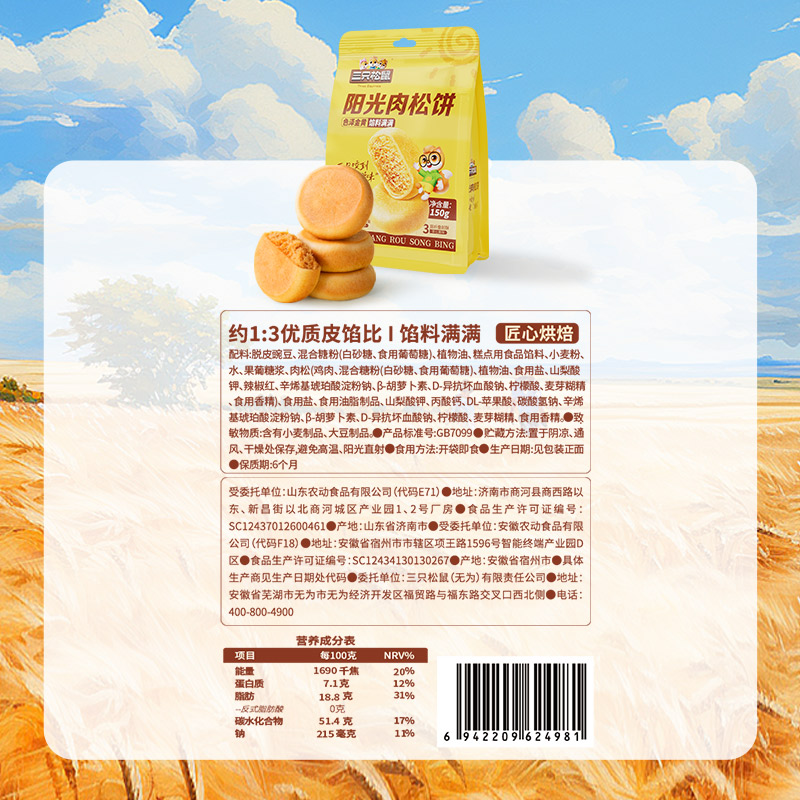 三只松鼠肉松饼150g零食品糕点心办公室小包 任选20件 专区99元