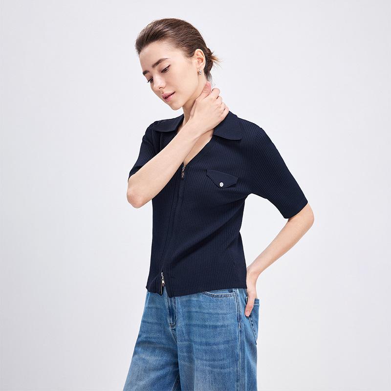 蓝色休闲上衣 女士新款 Navigare意大利小帆船夏季 设计感针织开衫