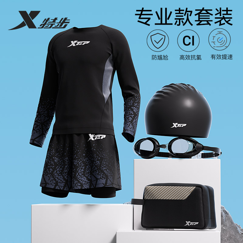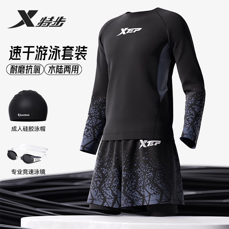 全套泳装 弹力速干防晒宽松双层泳裤 男士 正品 泳衣套装 特步2025新款