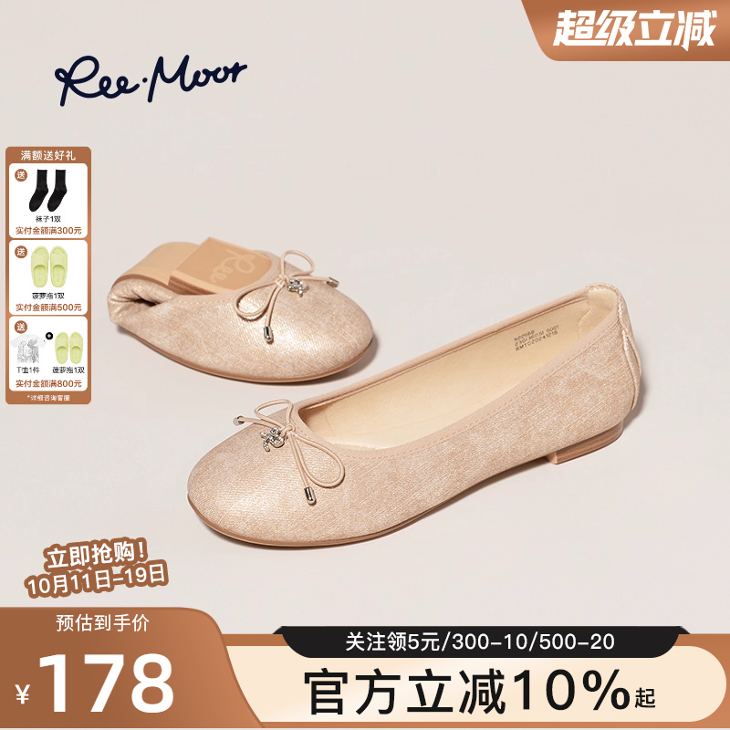 蝴蝶结一脚蹬单鞋 银色浅口圆头平底鞋 女 新款 REEMOOR睿慕2025秋季