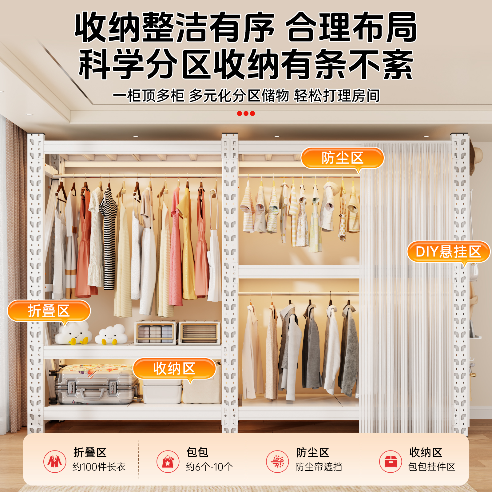 货架衣柜开放式 衣架出租房收纳衣帽柜子 挂衣服置物架落地简易组装