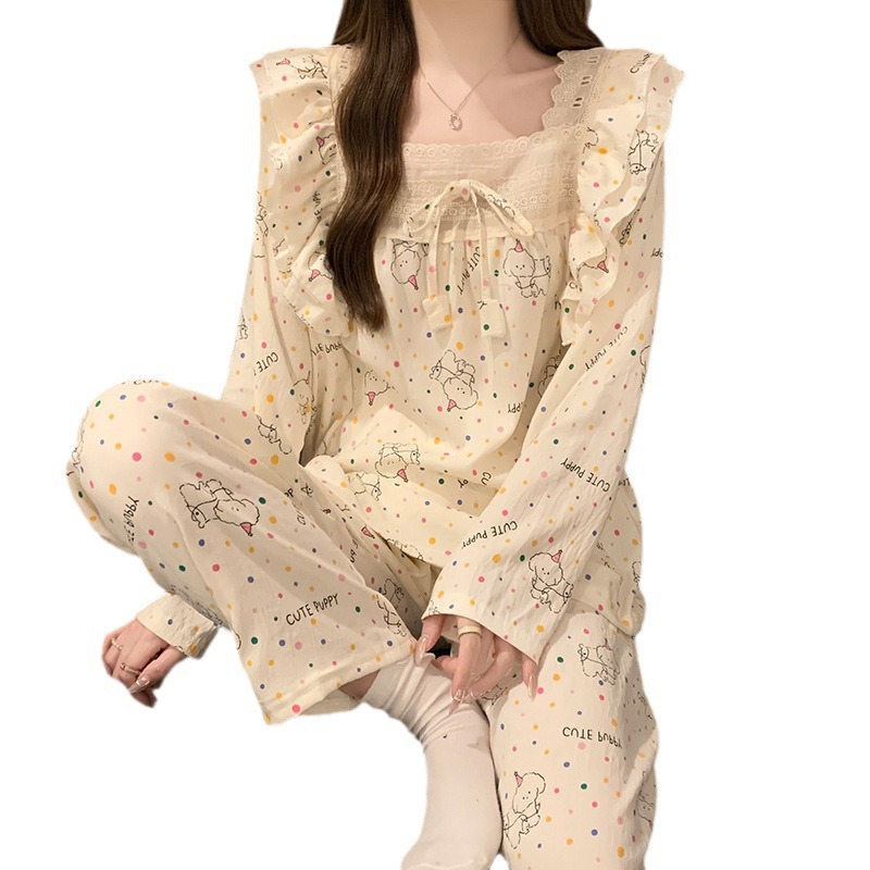 套装 小香风可外穿家居服长袖 纯棉2025年新款 马克公主睡衣女春秋款