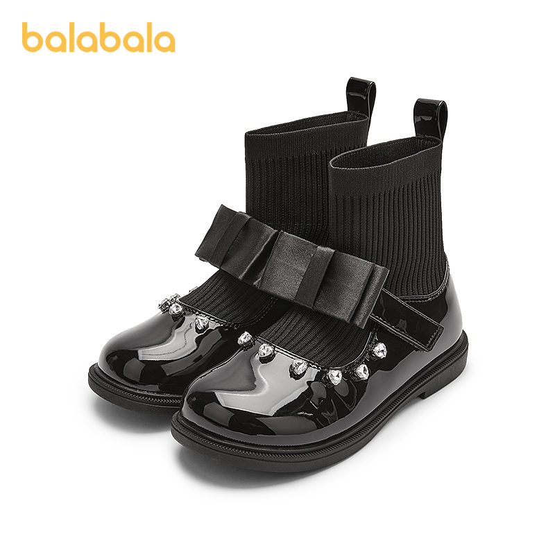 巴拉巴拉童鞋 袜靴时髦百搭 女童公主靴蝴蝶结中筒靴子黑色皮靴秋季