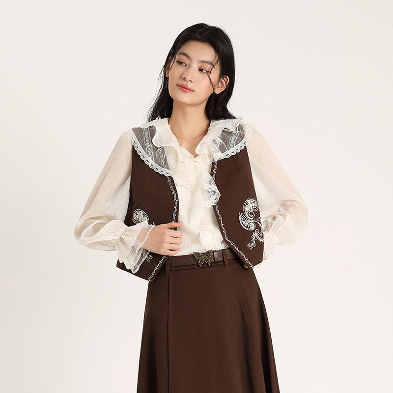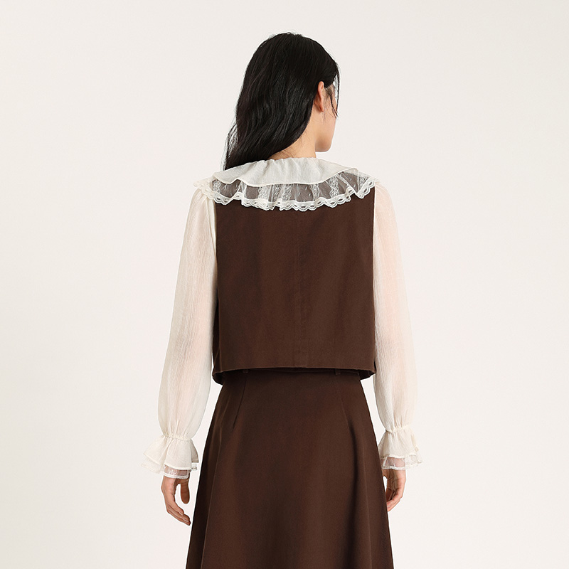 镂空花边纽扣针织衫 秋天叠穿马甲 吊带背心女内搭上衣外搭独特罩衫