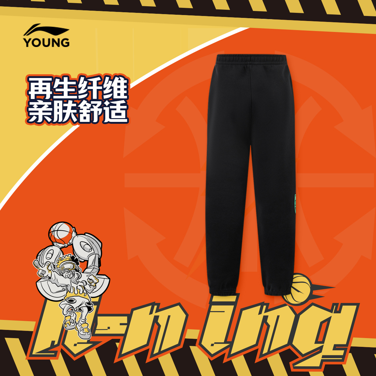 男2025新款 子休闲长裤 春秋季 宽松直筒裤 男生卫裤 李宁青少年运动裤