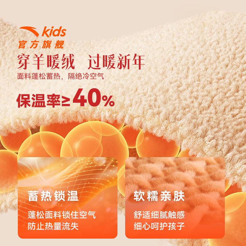 新年龙服安踏儿童针织运动上衣2025春新款 舒适保暖羊羔绒外套童装