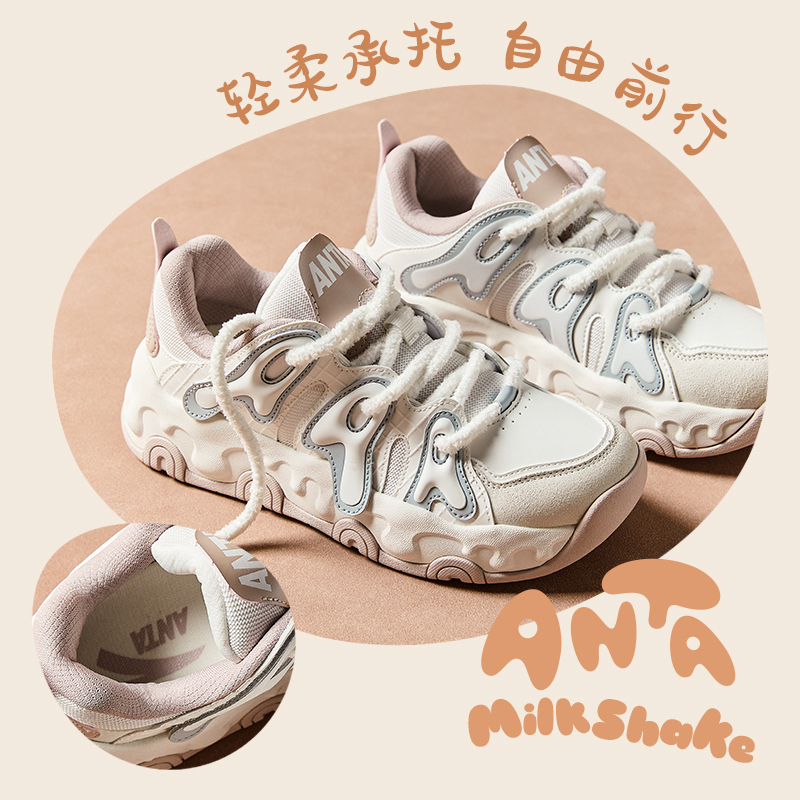 秋季 女2025新款 皮面厚底时尚 老爹鞋 安踏奶昔 女鞋 潮流休闲面包鞋