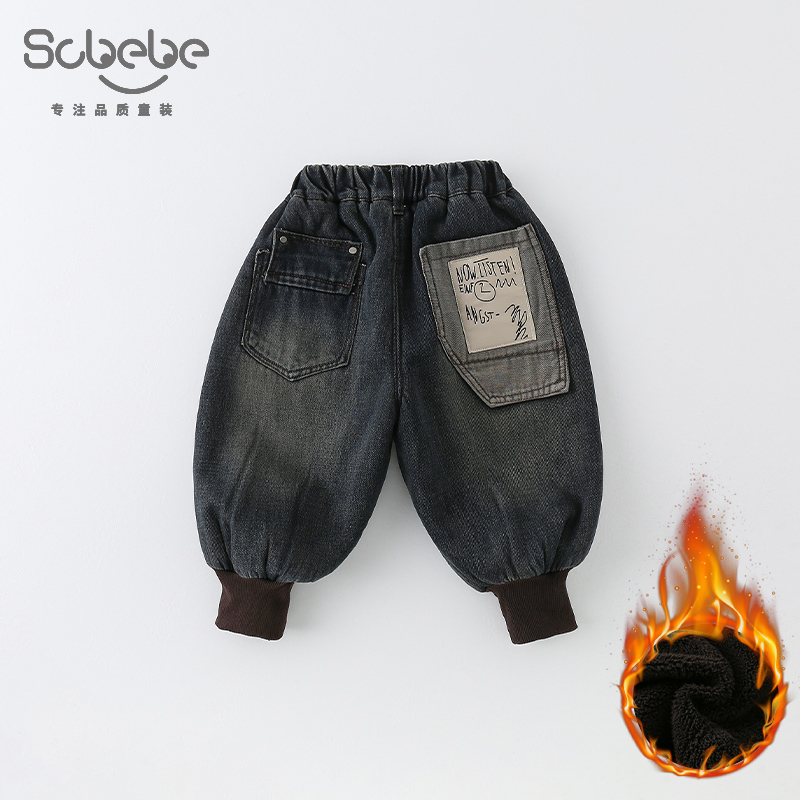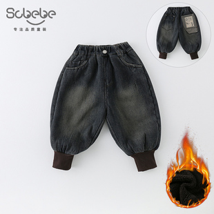 加厚裤 男童加绒牛仔裤 中小童休闲酷帅冬季 2025新款 子AK1034 秋冬款
