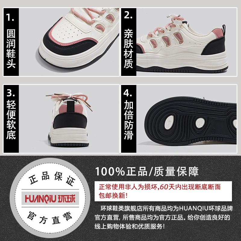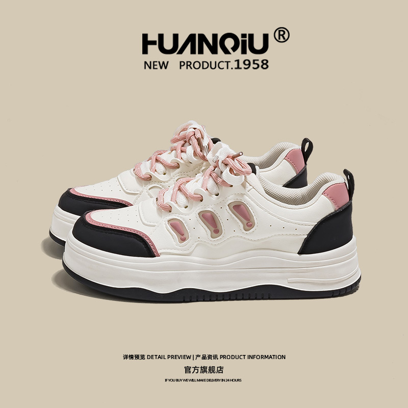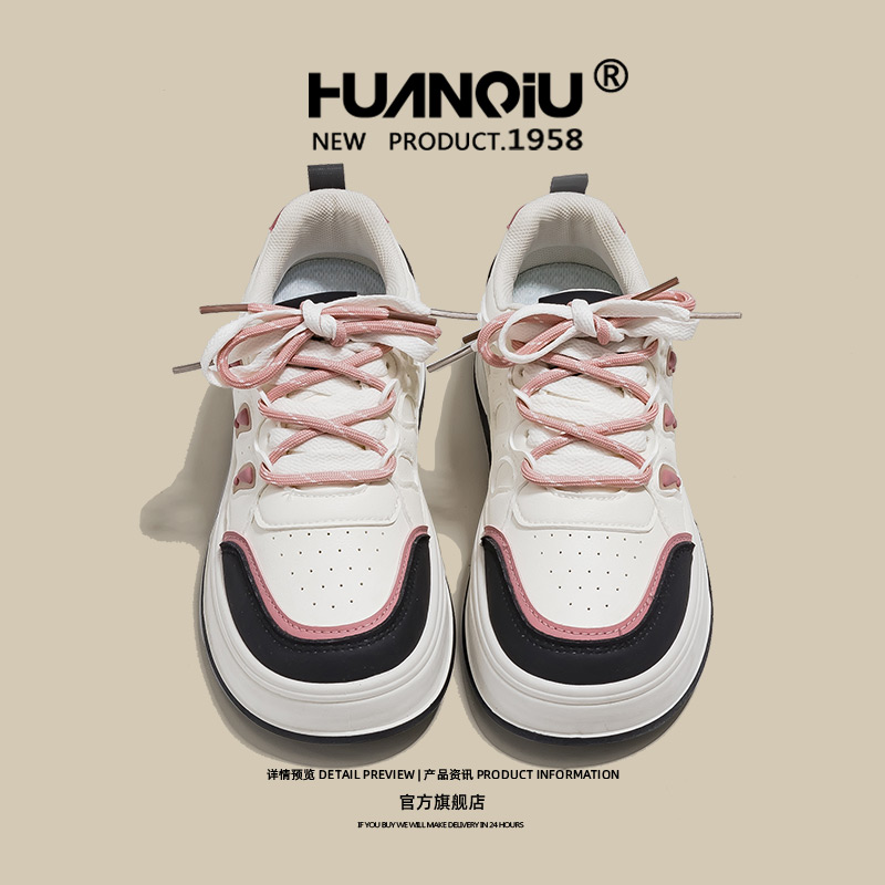 板鞋 环球环球黑粉色厚底轻便小白鞋 百搭小众不撞款 新款 女2024秋季