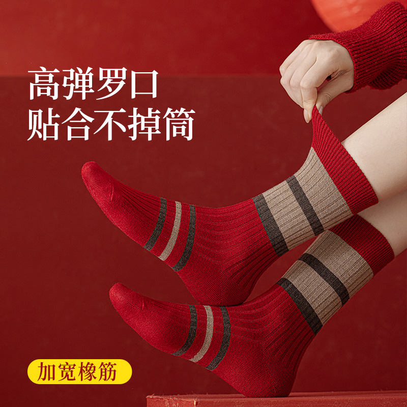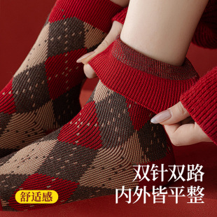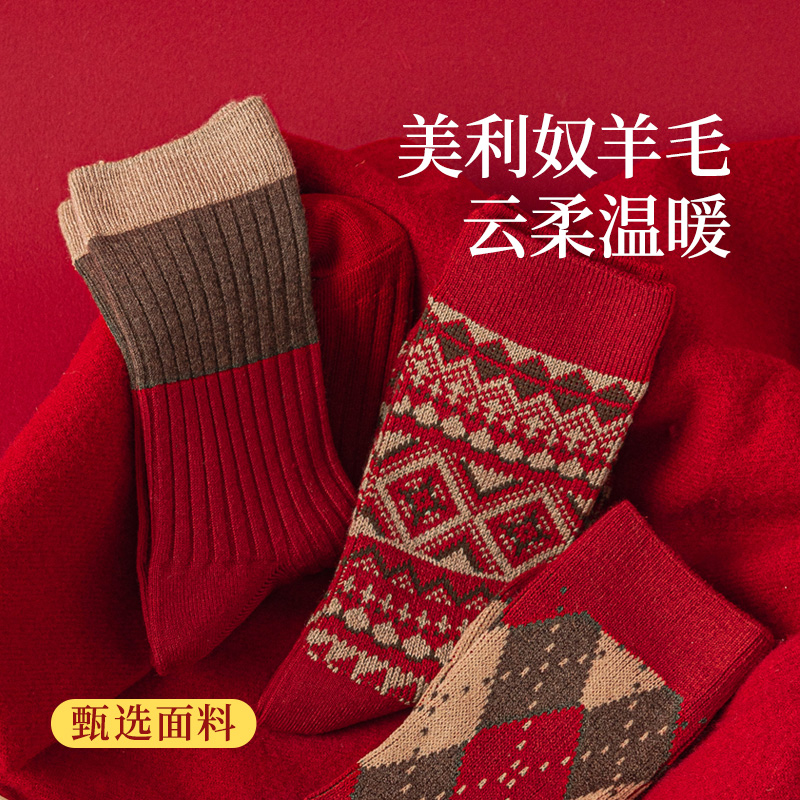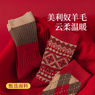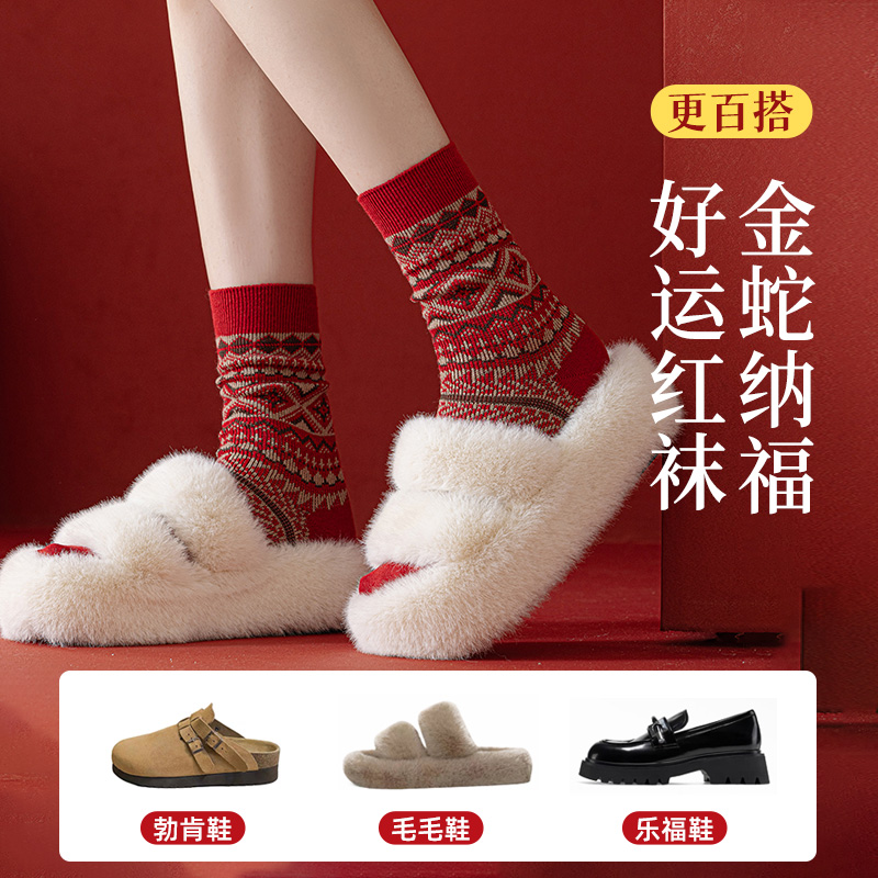 羊毛本命年蛇年红袜子女中筒袜秋冬季 红色过年2025新年礼物长棉袜