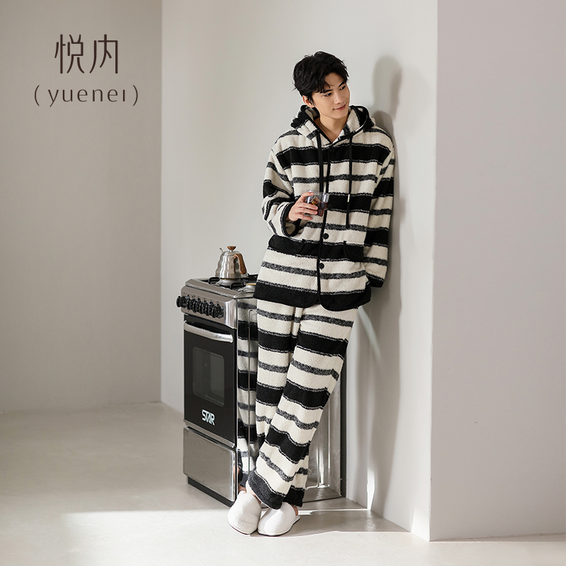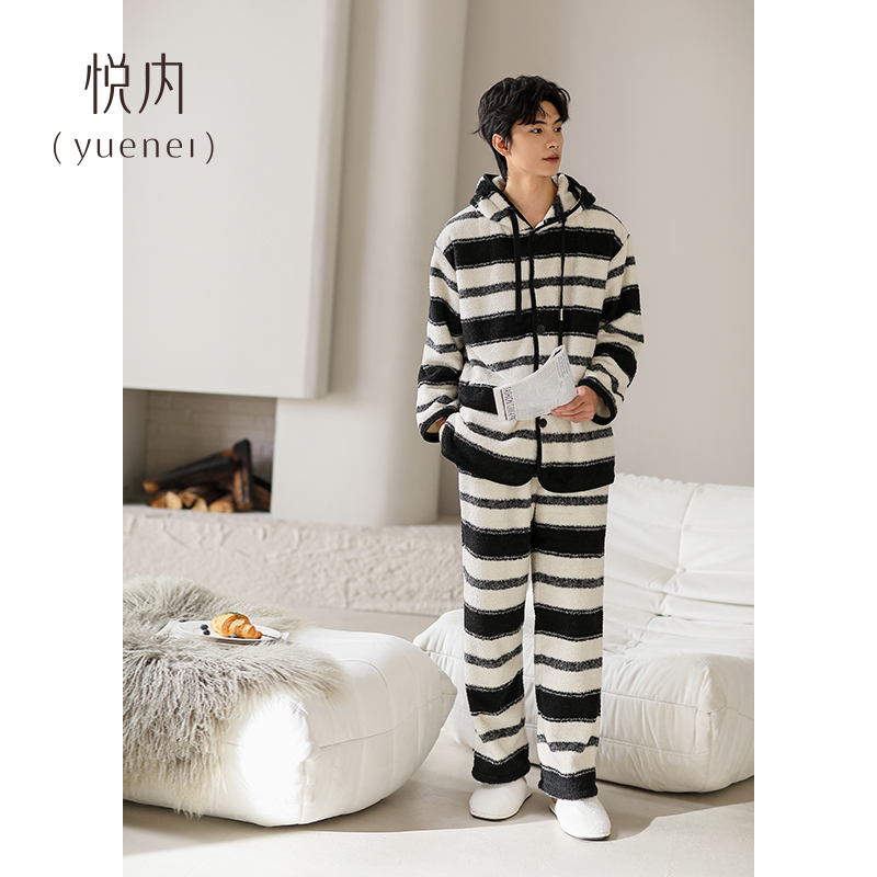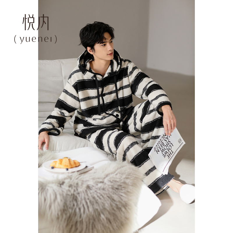 保暖学生家居服新款 加绒男士 法兰绒加厚套装 秋冬珊瑚绒睡衣男冬季