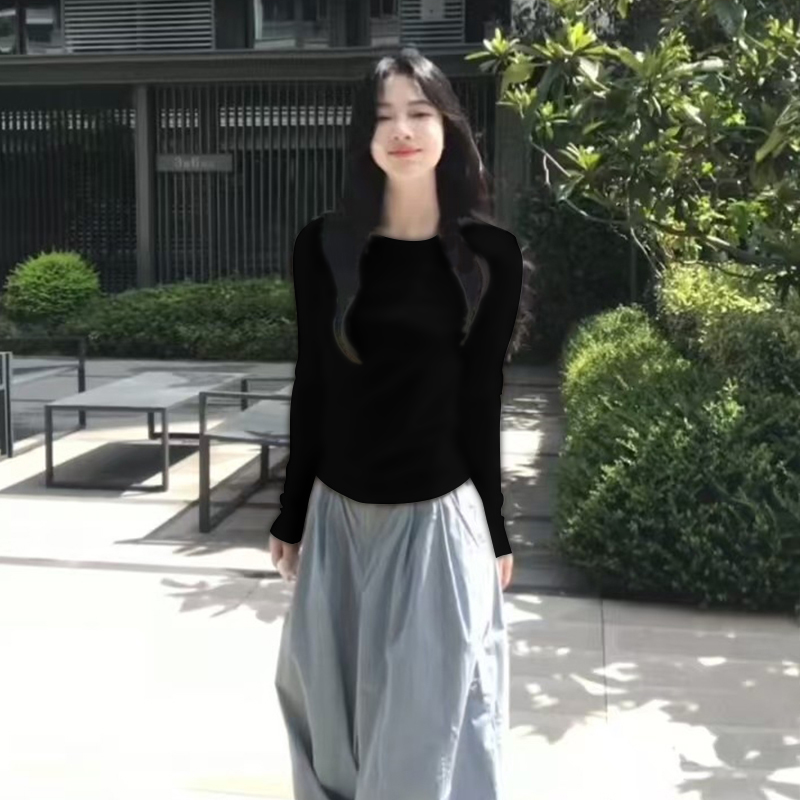 修身 打底衫 显瘦上衣服 T恤女春秋内搭短款 设计感小众正肩纯棉长袖