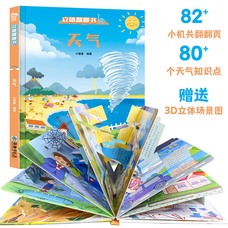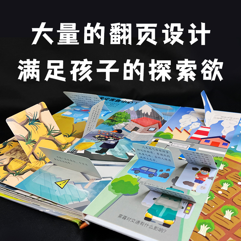 精装 揭秘天气 儿童3D立体翻翻书揭秘系列创意大师洞洞机关书宝宝撕不烂探秘幼儿园儿童绘本情景体验奇趣科普早教启蒙 送3D场景