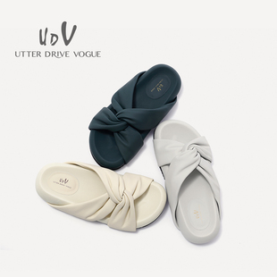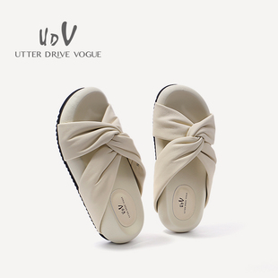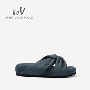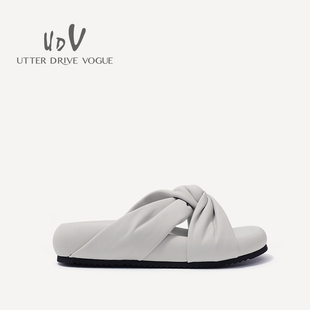 休闲沙滩鞋 女鞋 圆头平底时尚 UDV2024春夏真皮羊皮交叉带扭扭拖鞋