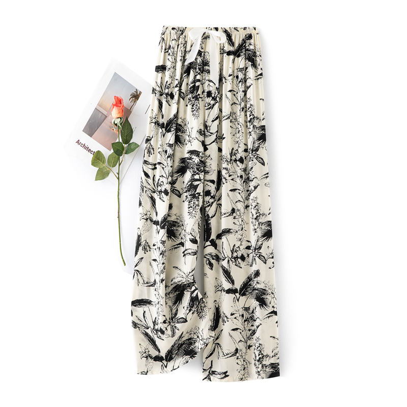 长遛弯可外穿宽松家居空调九分裤 人造棉阔腿裤 子 女夏薄款 棉绸睡裤