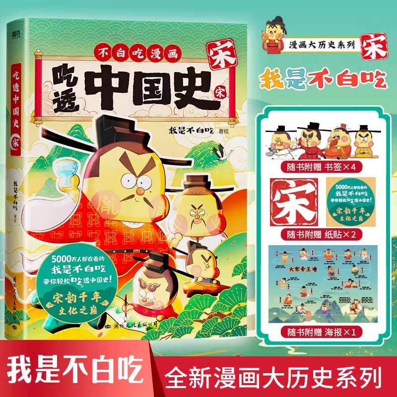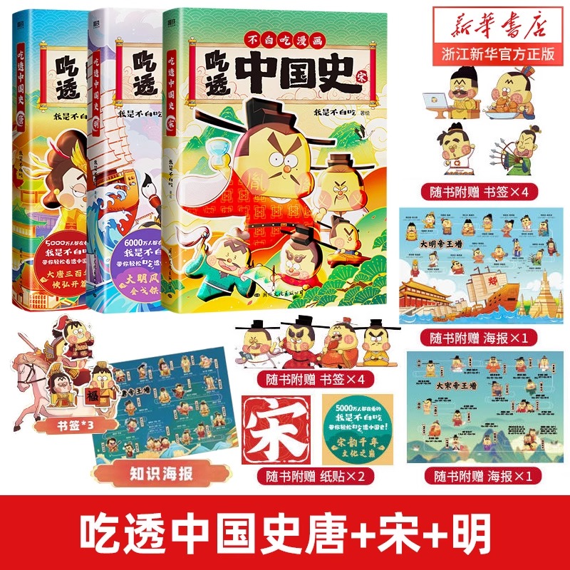 我是不白吃著不白吃漫画系列 新华正版 海报 宋 明 吃透中国史4册唐 书签 日历 中国历史百科科普漫画书籍 春秋战国 赠贴纸