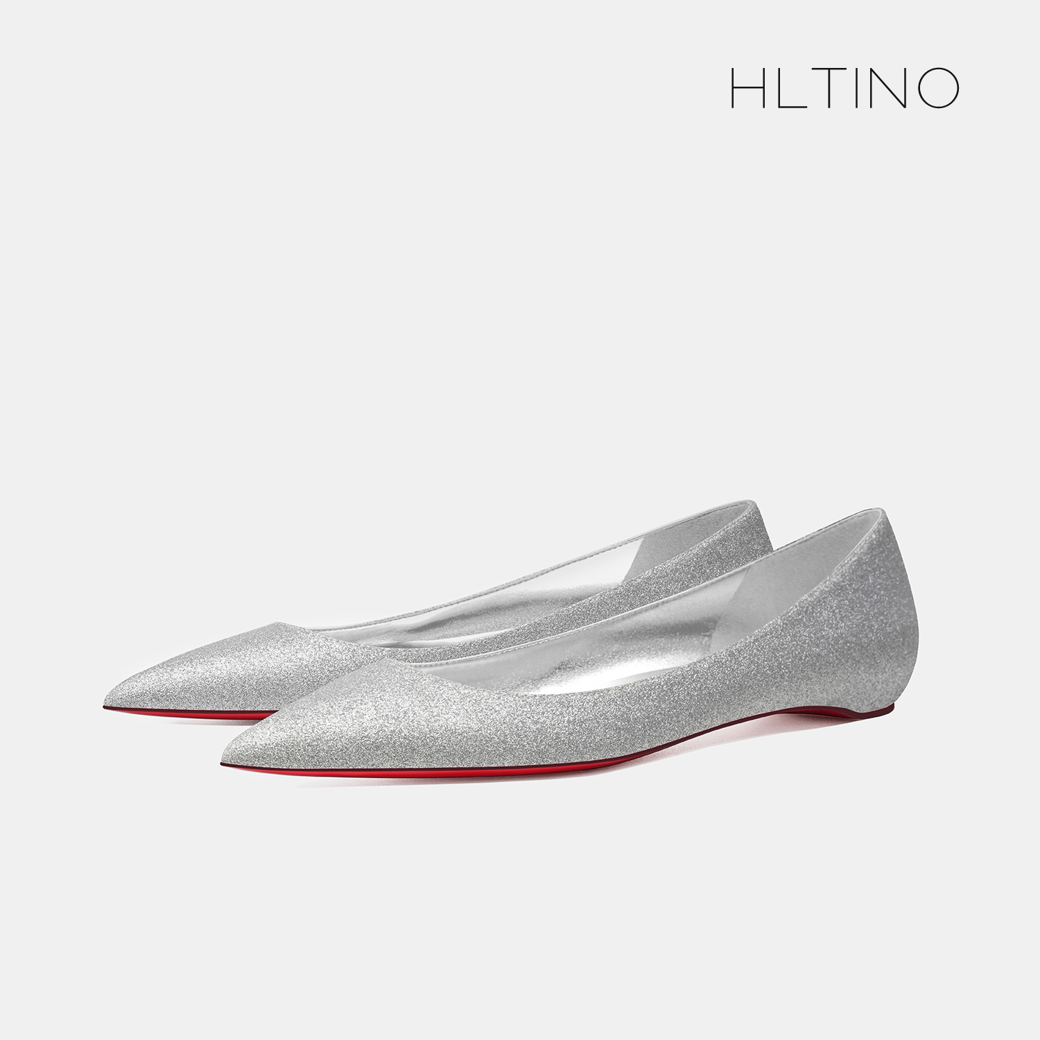 单鞋 银色性感法式 气质名媛浅口尖头内增高大码 时尚 子女 空乘平底鞋