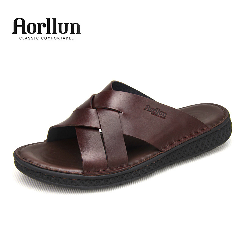 凉拖鞋 皮拖鞋 外穿休闲纯牛皮高档缝线男士 新款 男真皮手工编织夏季