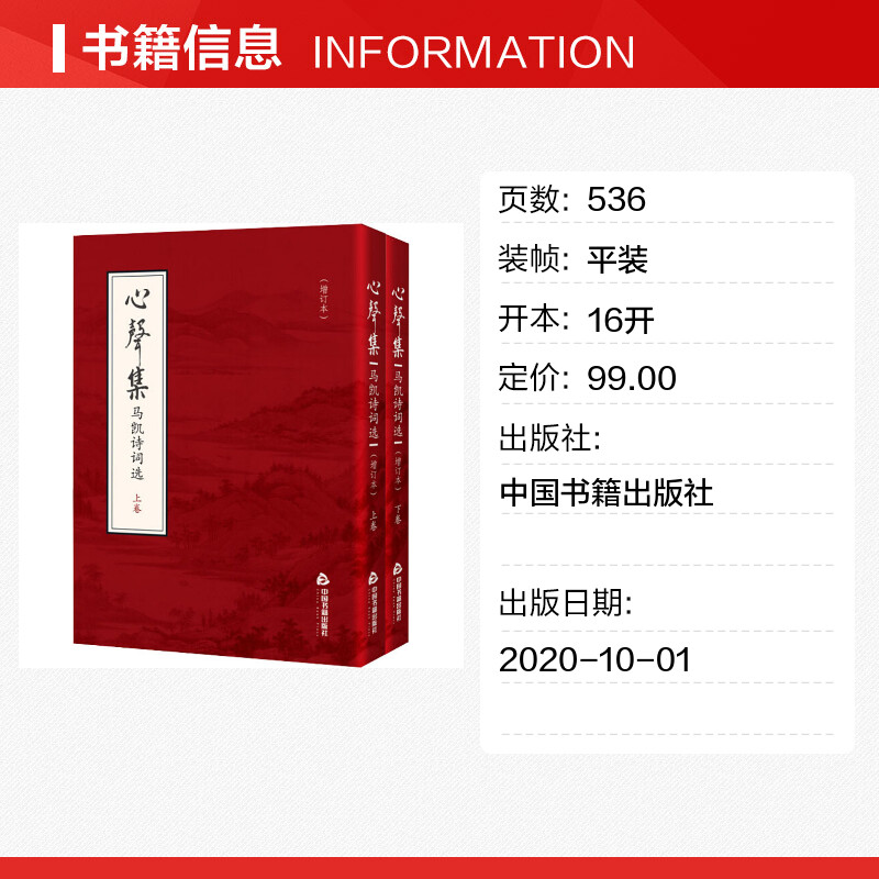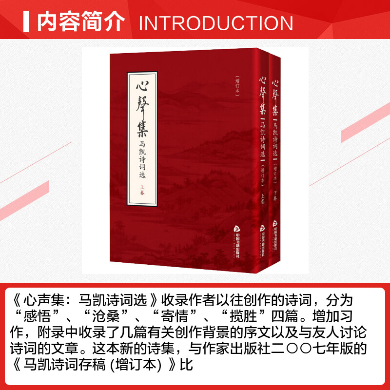 中国现当代诗歌文学 社 增订本 中国书籍出版 图书籍 新华书店正版 著 马凯 全2册 马凯诗词选 心声集