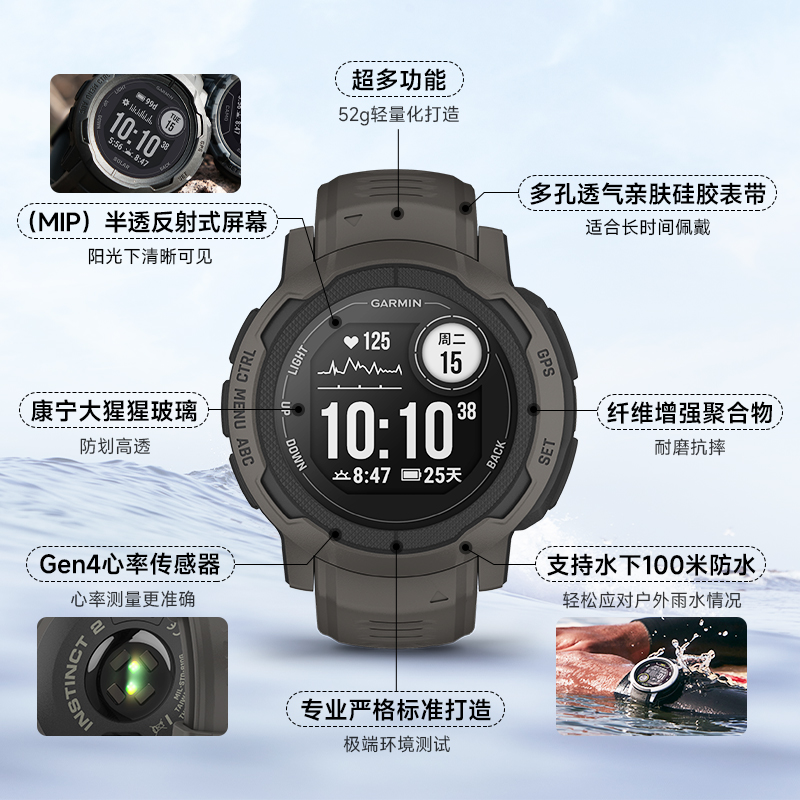 Garmin佳明本能Instinct2 2X太阳能智能户外运动手表徒步登山骑行