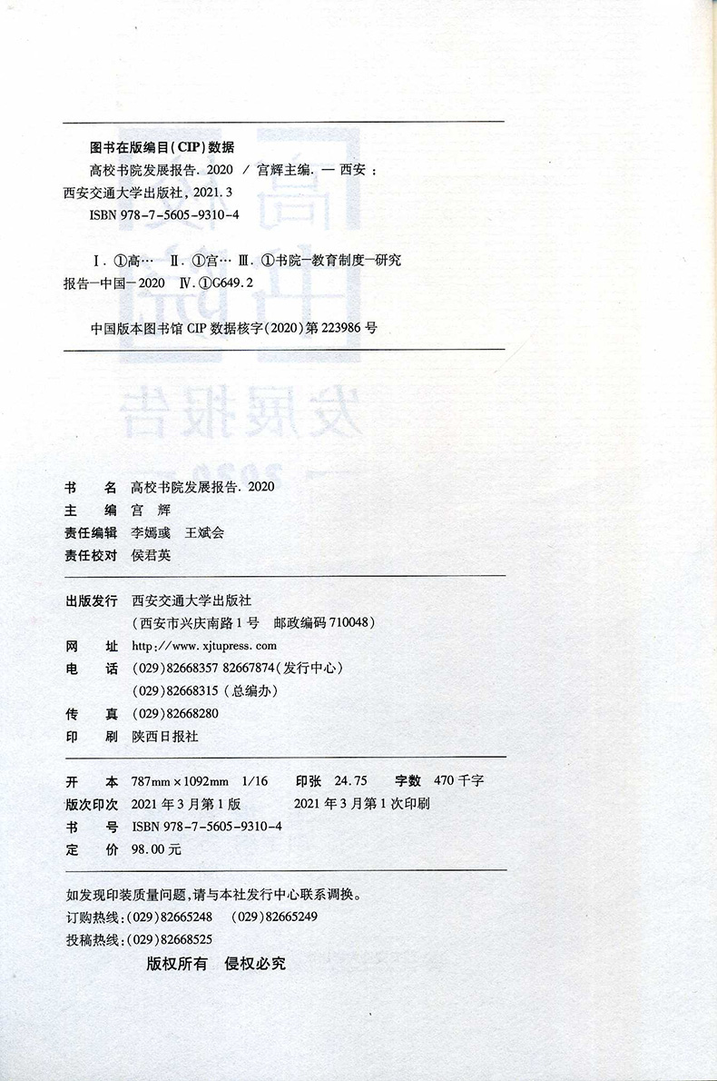 西安交通大学出版 正版 主编宫辉 高校书院发展报告.2020 社 现货