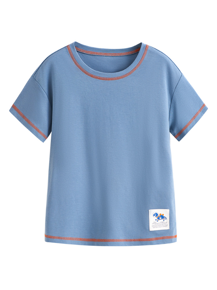 全棉女童小童夏装 euv 薄款 儿童纯棉白色t恤宝宝夏季 上衣 男童短袖