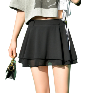 雪纺短裙裙裤 裙半身裙黑色女半裙伞裙小个子a字裙裙子雪纺裙 裤