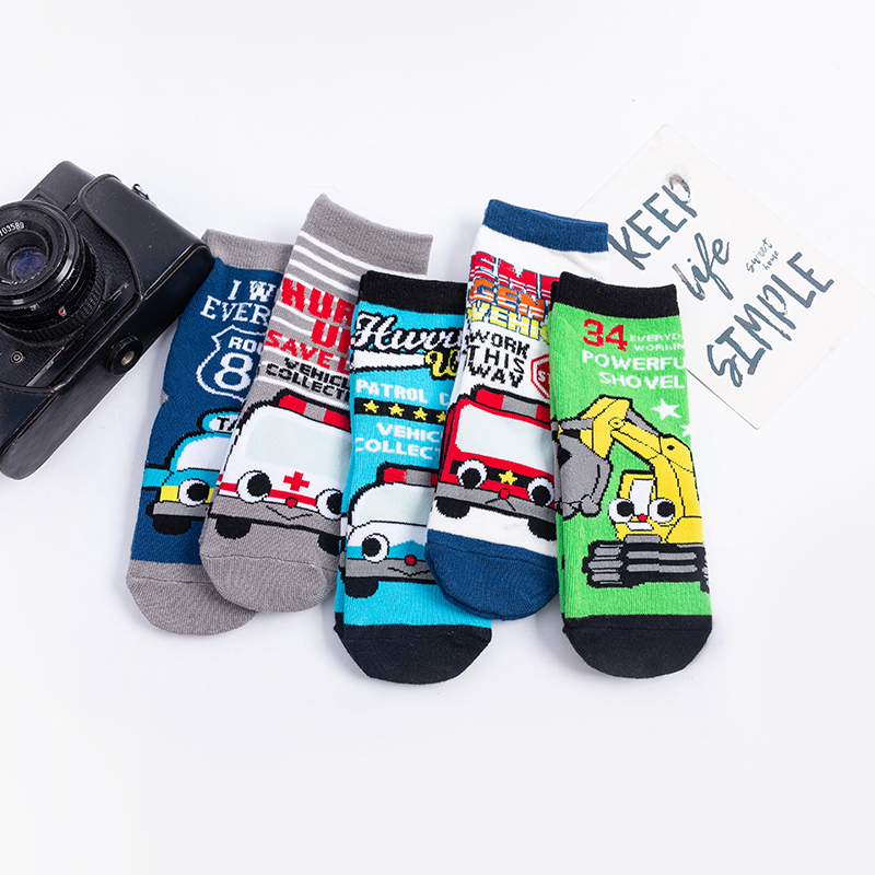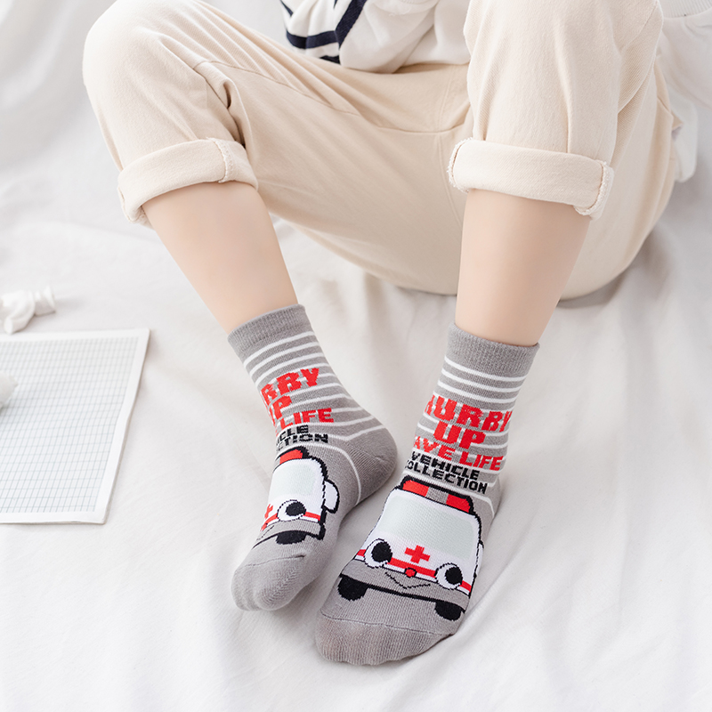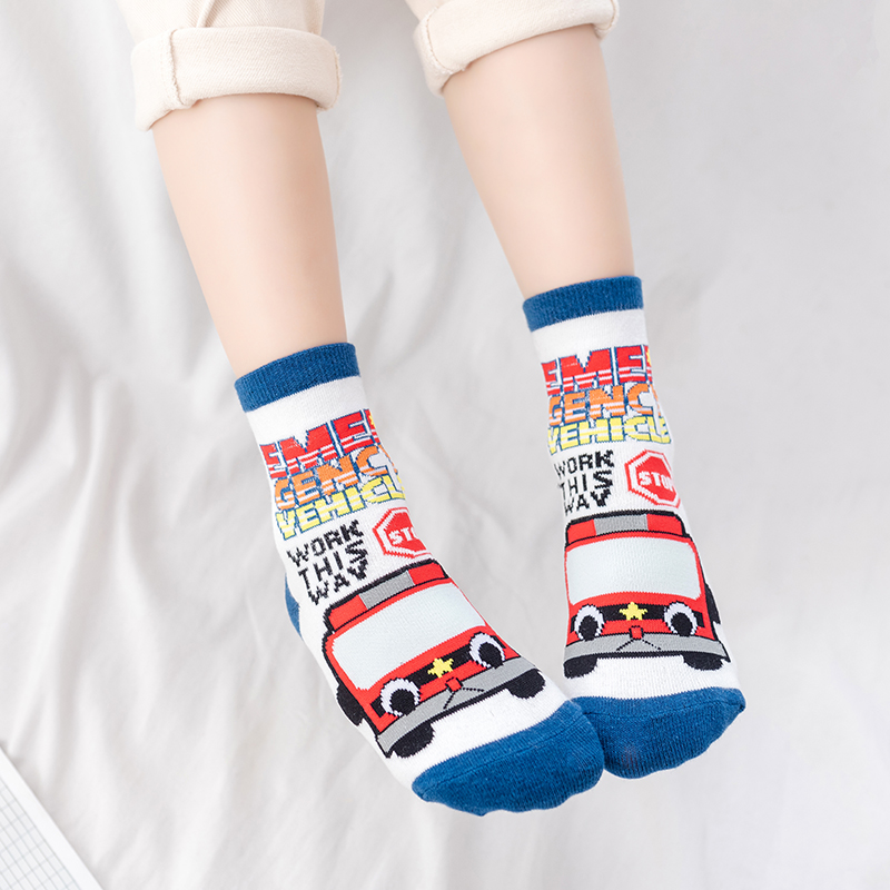 儿童袜子棉袜春秋新款 工程汽车男童中筒袜日系中大童学生卡通萌袜