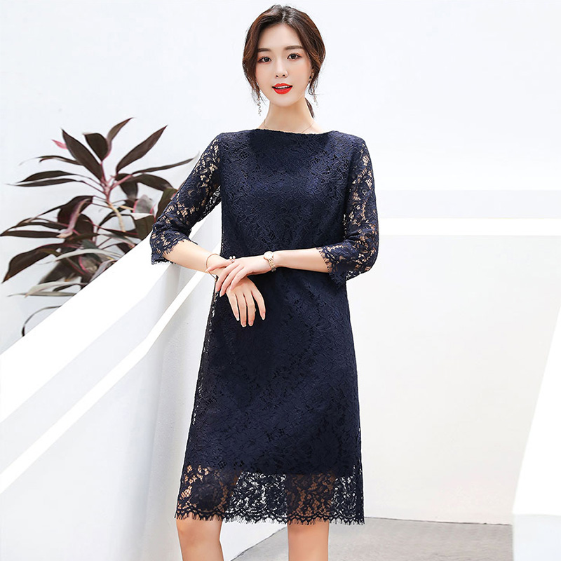 茗思高级感钉珠撞色连衣裙女2025早秋新款 裙子 气质宽松显瘦中长款