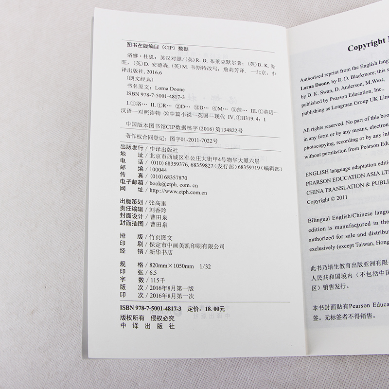 洛娜杜恩英文原版 正版 洛娜杜恩世界文学名著英汉双语读物第九级 朗文经典 中英文对照英汉互译英语图书文学小说课外阅读 包邮