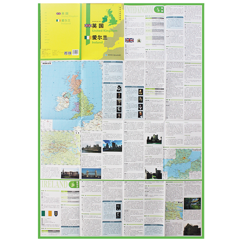 折叠袋装 社 1240x890mm 星球地图出版 英国爱尔兰地理百科 大幅面地图 双面印刷 世界分国地理图 大图 英国爱尔兰 英国爱尔兰地图