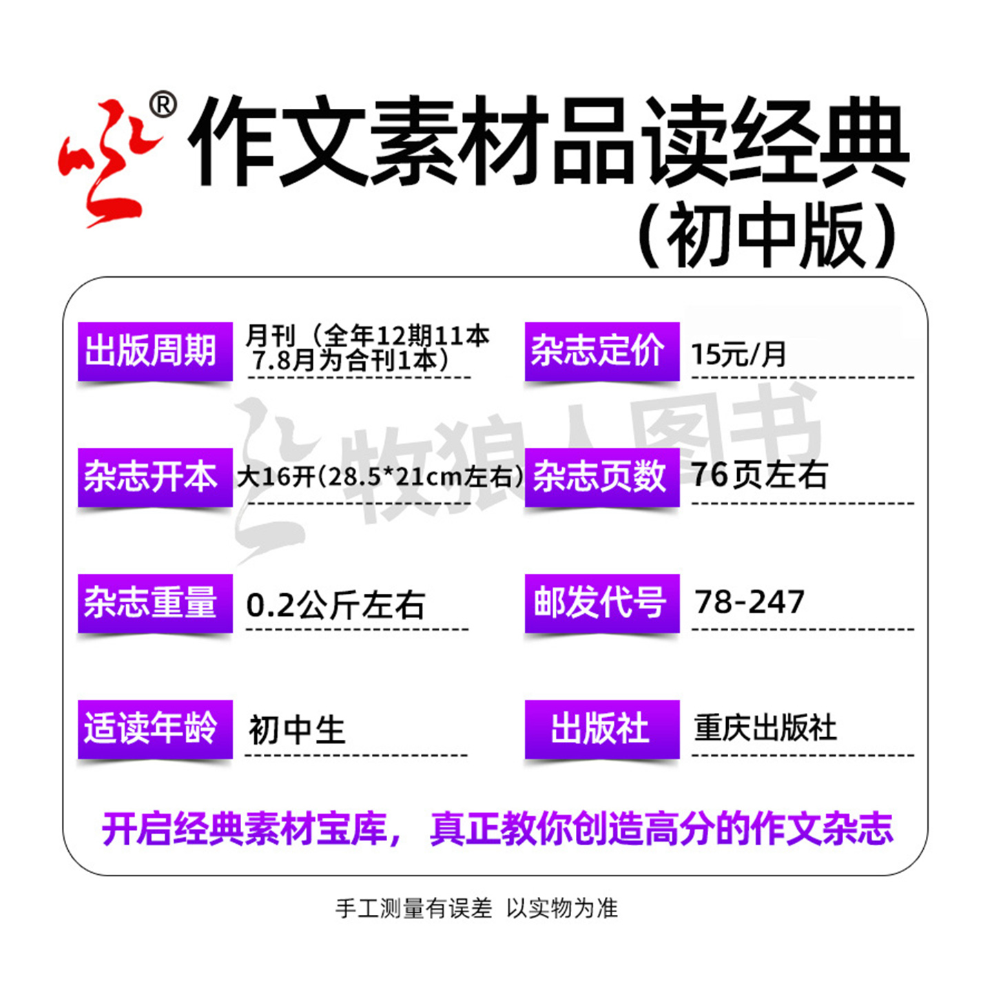 11月 2026全年 半年订阅 作文素材品读经典 初中生课堂内外作文素材中考版 杂志2025年1 2024全年 语文阅读专项训练非过刊 初中版