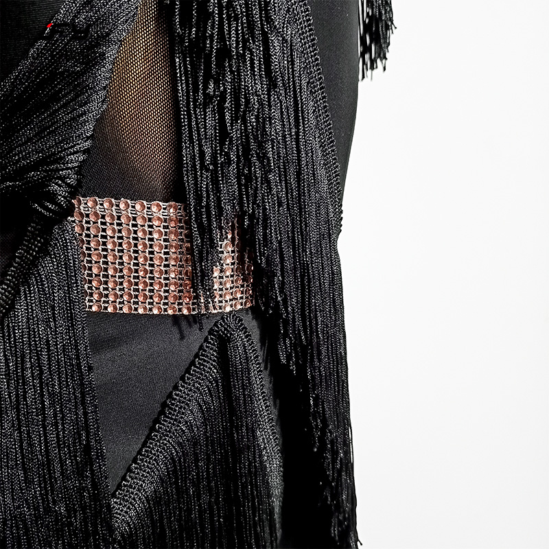 又见梵羽夏季 拉丁舞蹈服黑色流苏连衣裙国标不规则艺考服TL701