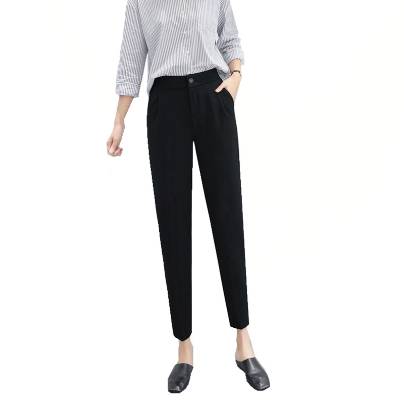 显瘦黑色女裤 高货速发春秋季 小脚九分西裤 宽松直筒休闲薄款 哈伦裤