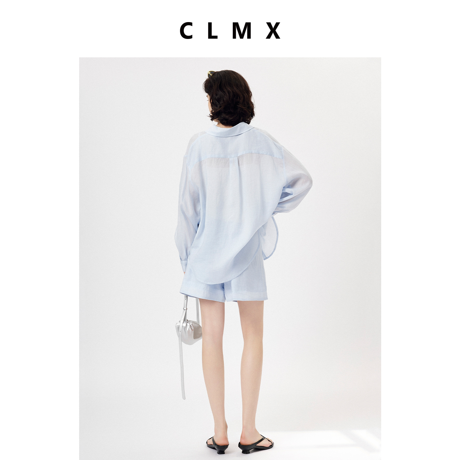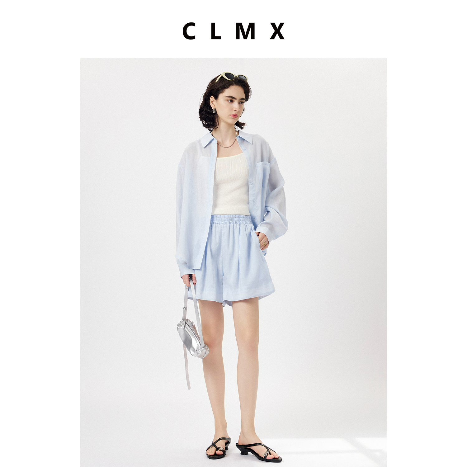 短裤 CLMX简约通勤两件套苎麻莱赛尔轻盈透气更舒适翻领长袖 衬衫