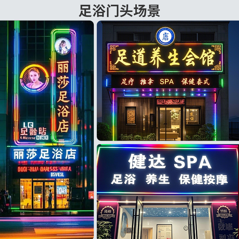 门头七彩流光跑马灯带led霓虹彩灯条商铺用广告招牌专用户外防水