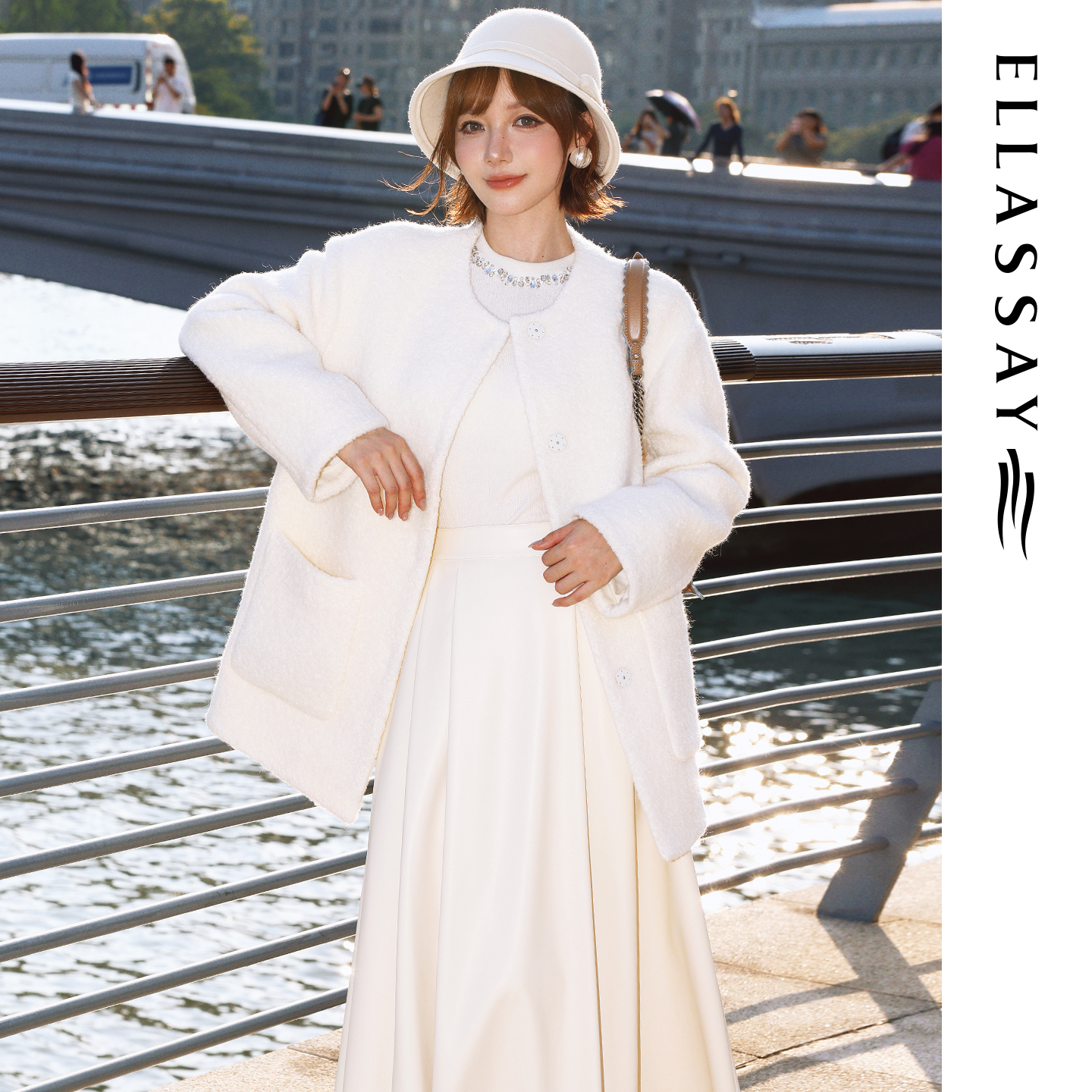 梨形百褶伞裙 优雅长款 LYNEE气质雪纺纱裙 白色大裙摆半身裙女秋季
