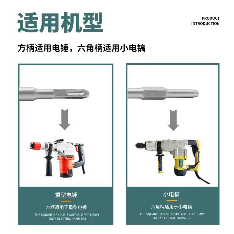 弹簧钢加宽凿子方四坑扁铲六角柄专用电镐铲子墙皮开槽电锤镐头