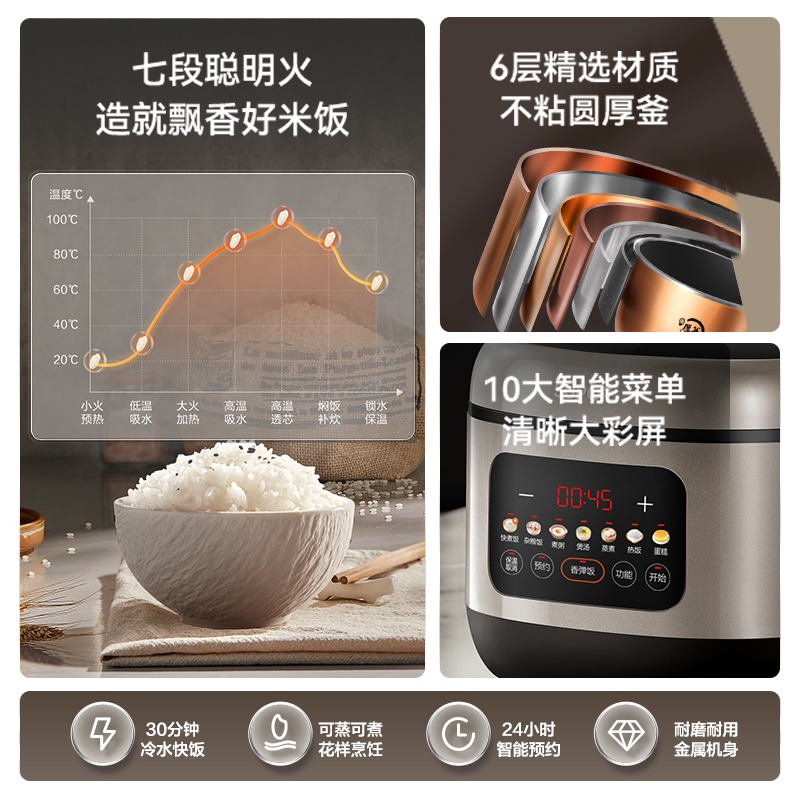 苏泊尔电饭煲家用不粘内胆多功能3L容量24小时智能预约煮饭锅