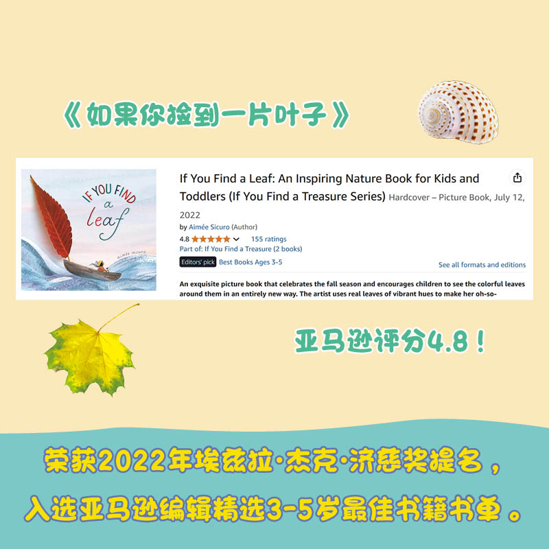 自然魔法系列全2册如果你捡到一片叶子如果你发现一个贝壳 节树叶创意自然手工作业美育艺术童书3岁以上亲子共读绘本 季