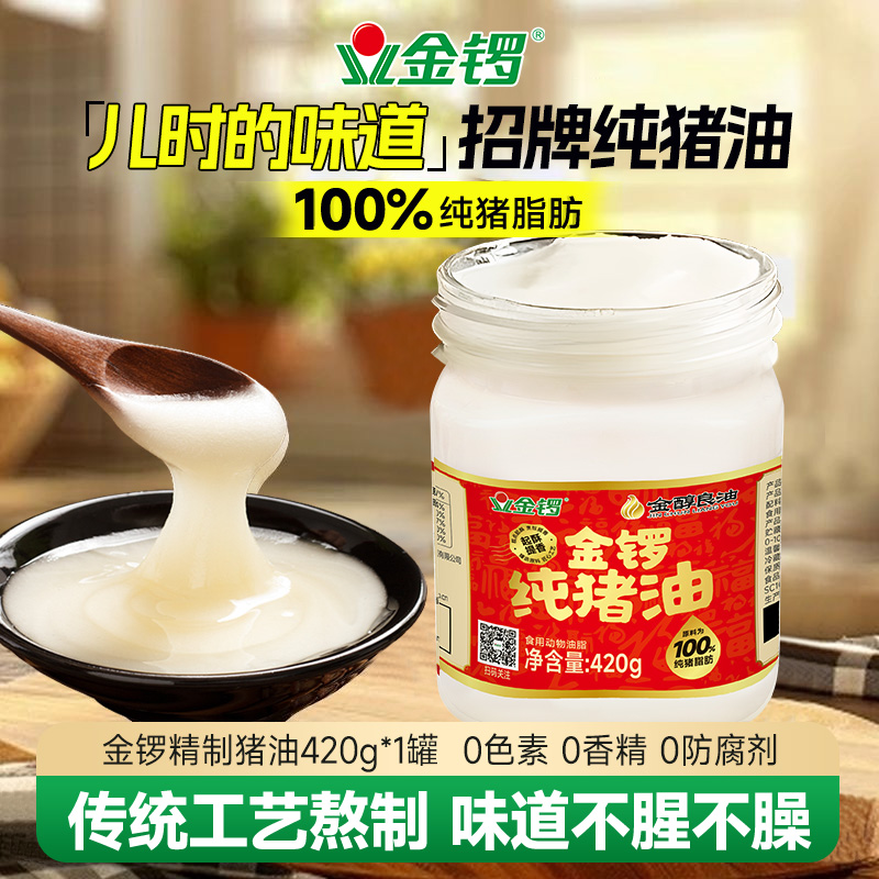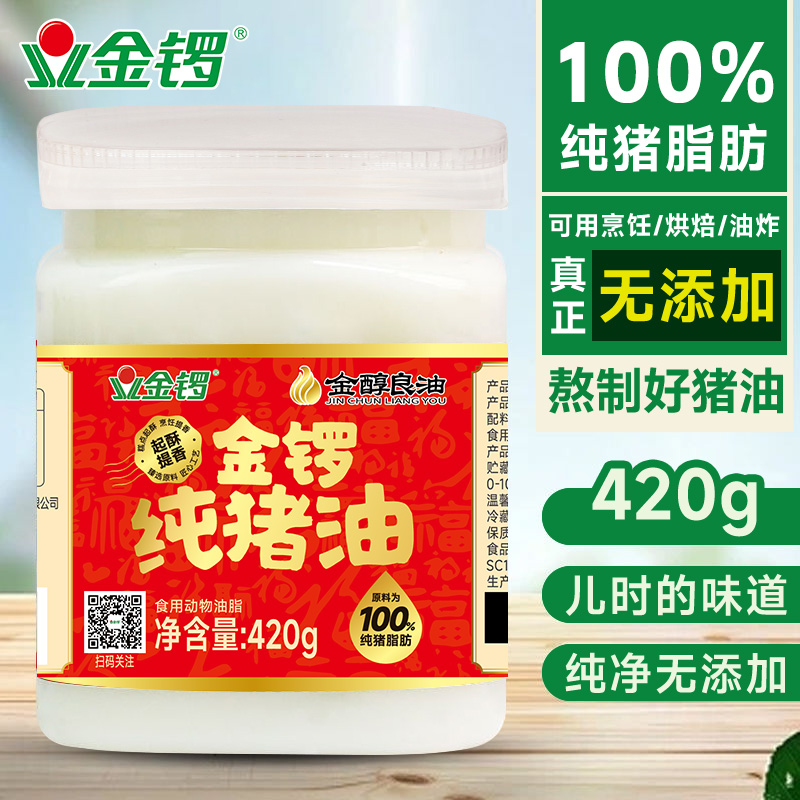 金锣猪油0添加防腐剂420g食用烘焙拌饭起酥油油炸炒菜精炼纯猪油