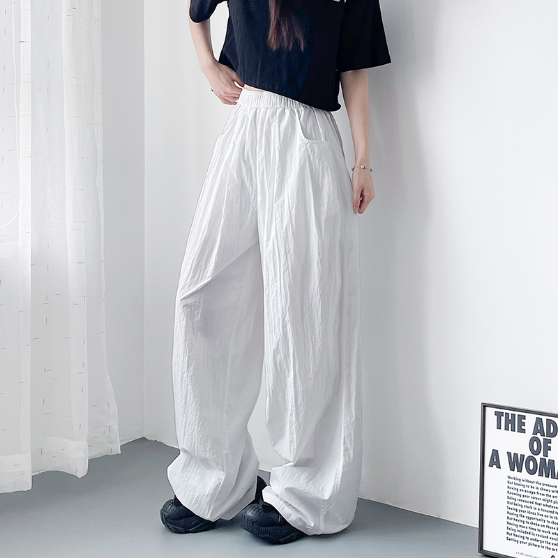 胖mm宽松显瘦防晒跳舞阔腿裤 大码 子 女夏季 白色不透冰丝微褶山本裤
