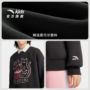 中大童休闲卫衣长袖 新款 上衣 2025秋季 安踏儿童卫衣女童套头衫