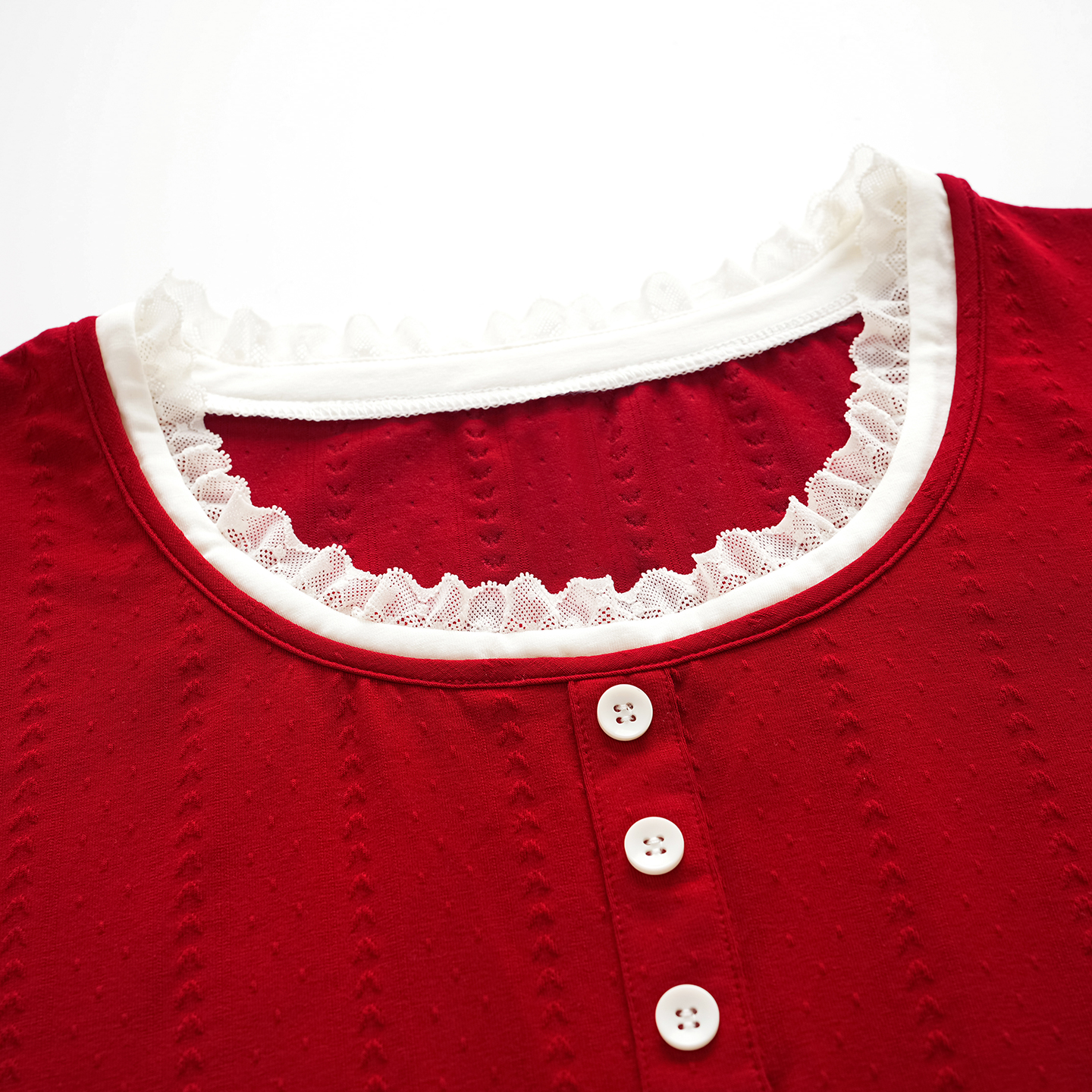 马克公主情侣睡衣女春秋新款 纯棉新婚结婚甜美喜庆红色家居服套装