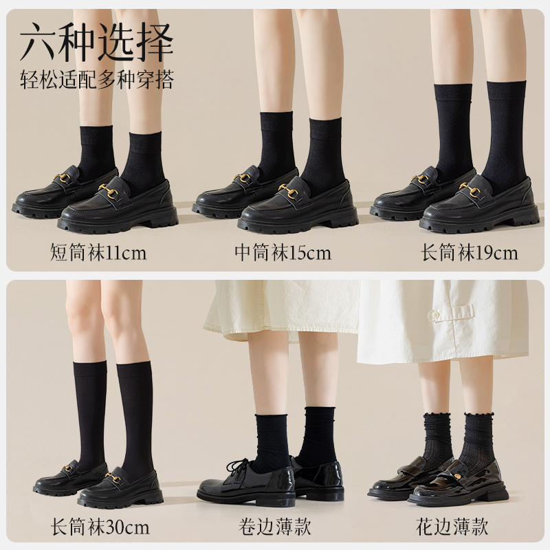 JKN压力小腿袜女春秋强压显瘦腿jk袜子黑色过膝高筒半中筒长筒袜