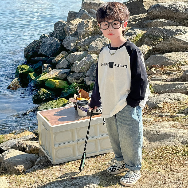 打底衫 2025春秋新款 拼色儿童上衣韩潮A11 t恤纯棉童装 男女童长袖