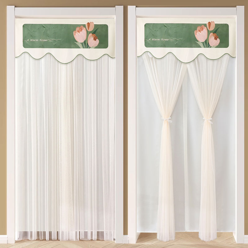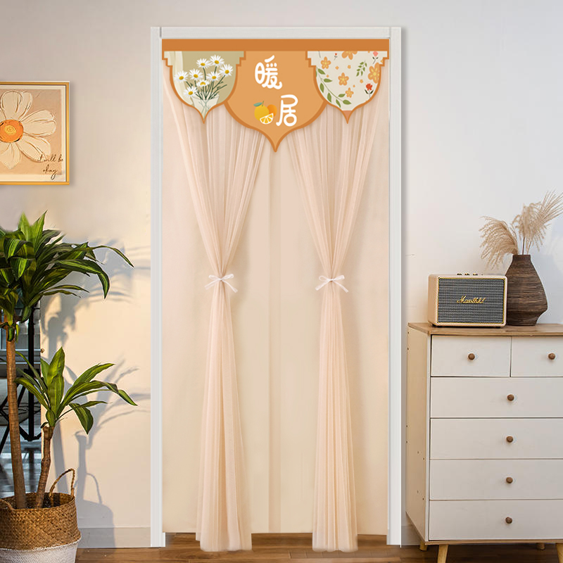 免打孔家用双层纱门帘半截隔断帘防蚊帘卧室防偷窥魔术贴布艺门帘