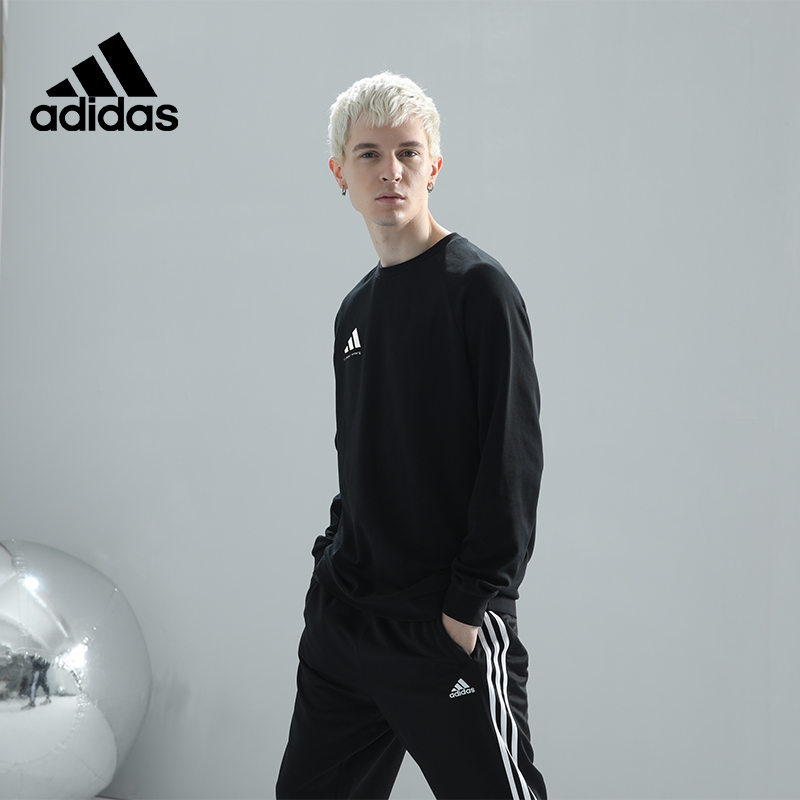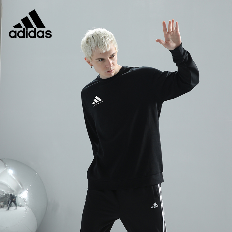正品 运动长袖 女生情侣圆领套头衫 adidas阿迪达斯春秋黑色卫衣男士