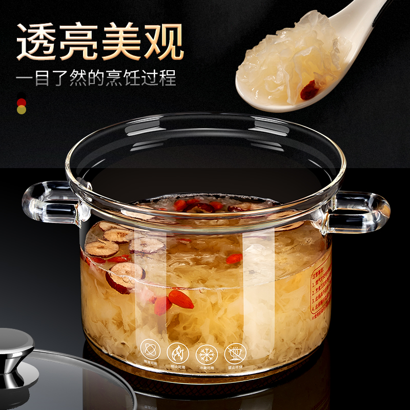 高硼硅玻璃汤锅家用双耳锅电陶炉加热煮锅炖锅耐高温透明蒸锅奶锅